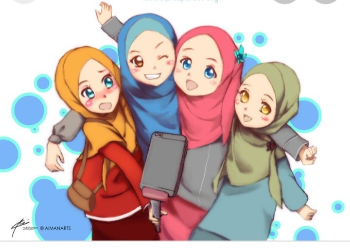 Gambar Anime Berhijab Bersahabat - Gambar 5 Orang Sahabat
